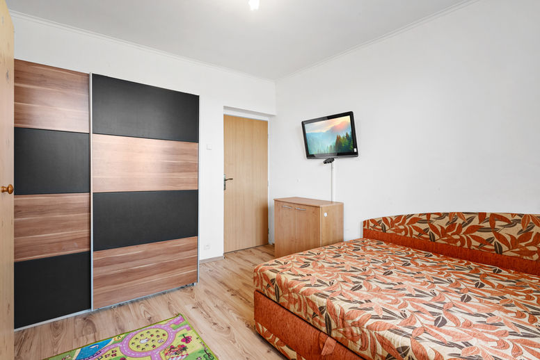 Kuchyň je vybavena troubou, sklokeramickou deskou, mikrovlnnou troubou a jídelním stolem. Z prostorného obývacího pokoje je vstup na lodžii. Koupelna je vybavena sprchovým koutem a umyvadlem a toaletou. Součástí bytu jsou také dvě sklepní kóje – jedna o velikosti 5 m² a druhá o rozloze 8 m², což nabízí dostatek úložného prostoru.
