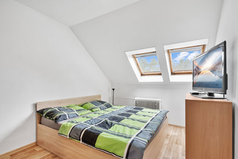 Ve druhém nadzemním podlaží o ploše 50 m² se nacházejí tři ložnice, které lze rovněž rozšířit úpravou příček. Ve třetím nadzemním podlaží o ploše 50 m², tedy v podkroví, je půdní prostor, který v současnosti slouží jako úložné místo, avšak do budoucna je zde možnost vytvoření další obytné místnosti.