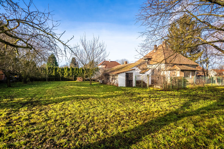 U domu je rovinatá a slunná zahrada s vlastní studnou a vzrostlými ovocnými stromy.